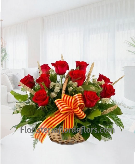 Cesta 10 Rosas Rojas para Sant Jordi